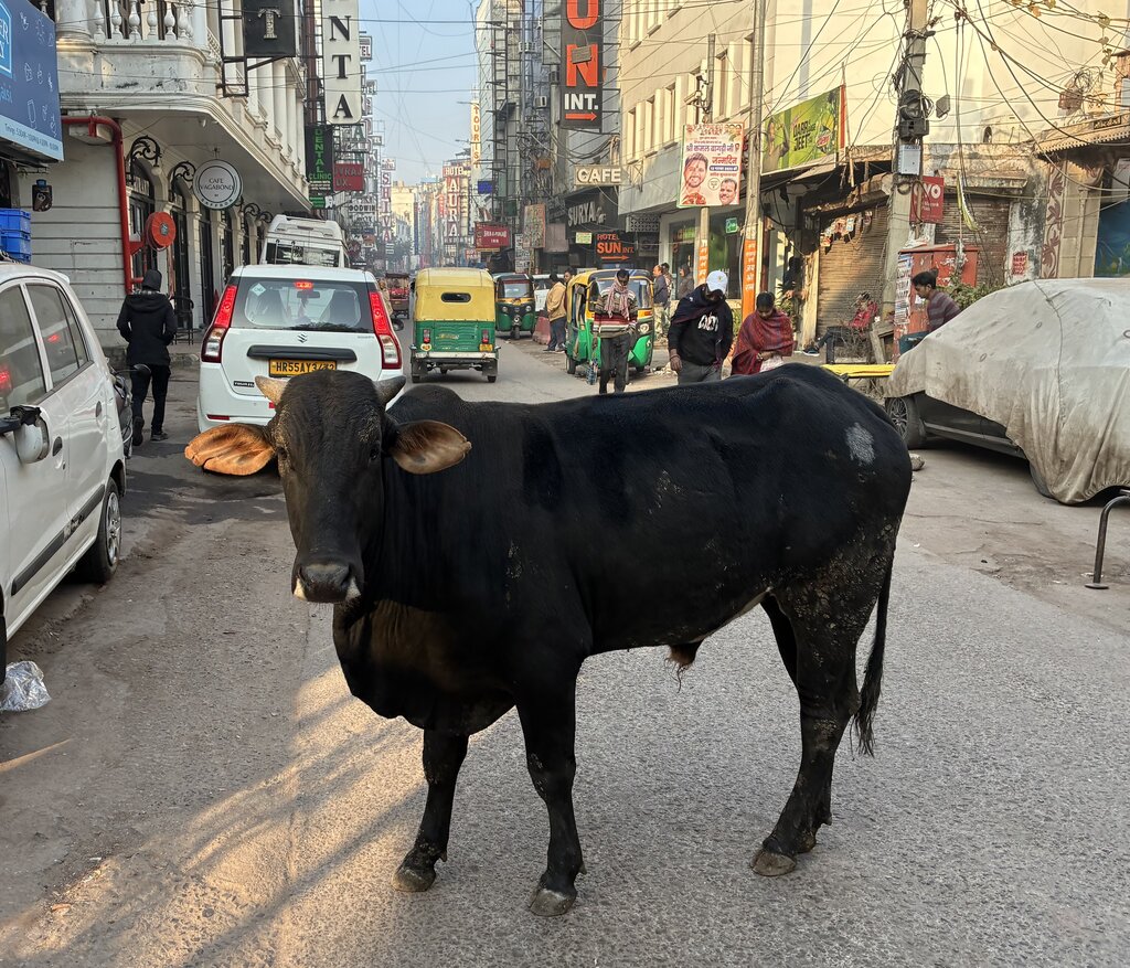 Рядом с кафе нас встретила корова.