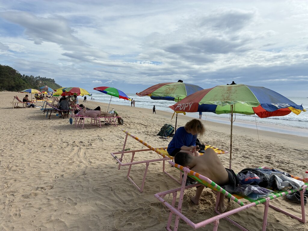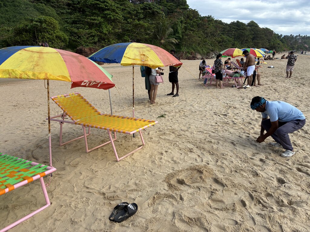 Мы арендовали два лежака и два зонтика (200 рупий за штуку) и работники начали нам их устанавливать.