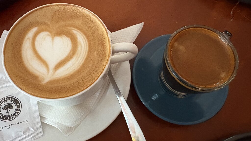 С утра мы доехали до ближаешго по пути кафе с кофе-машиной. Кофе оказался настолько вкусным, что договорился и купил у них пачку зерен.