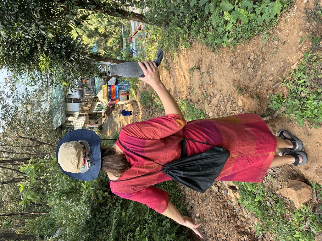 Спуск к водопаду. Мы постеснялись демонстрировать пиво, поэтому замаскировали его носком.