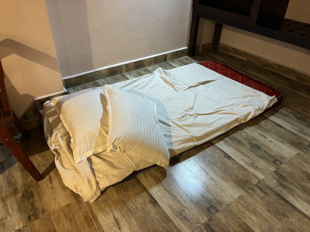 С отелем мы договаривались предварительно и нам обещали, что в одном из номеров будет две раздельные кровати. По факту оказалось, что дополнительная кровать выглядела так.