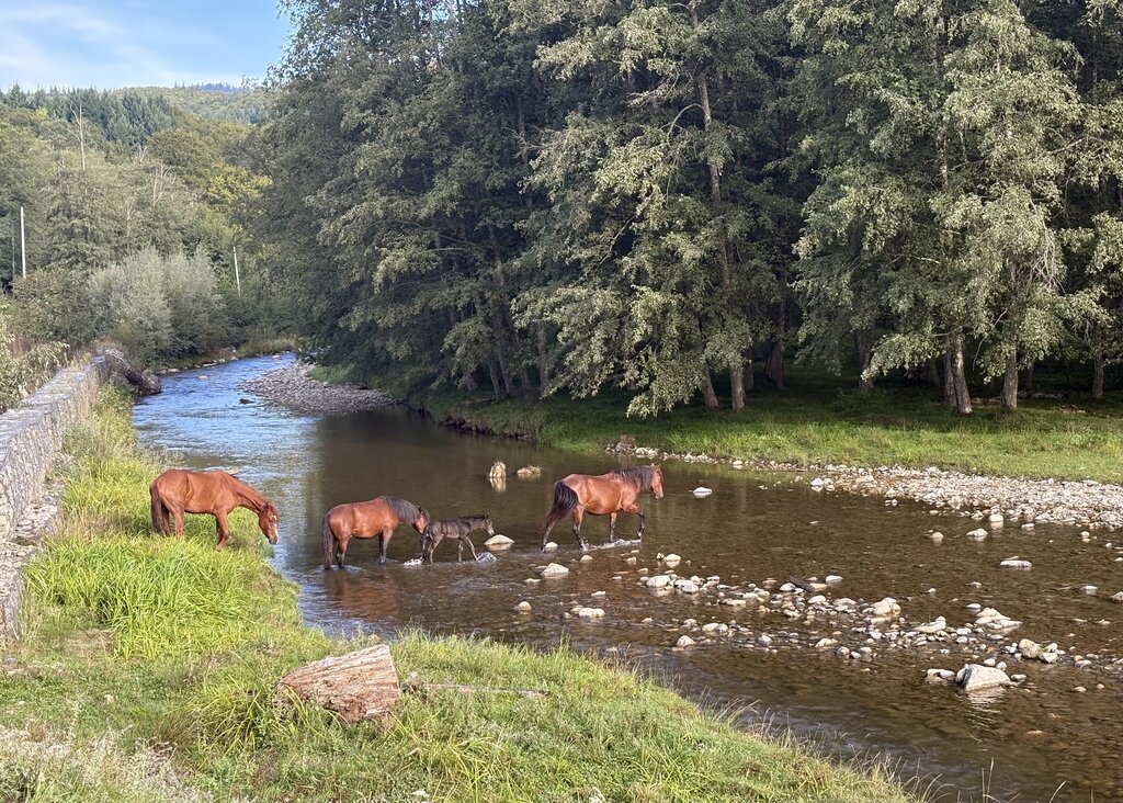 С утра мы, перекусив йогуртами, отправились к Stana de Brunei, последней точке до которой можно доехать на машине перед подъемом на гору Молдовяну. Путь представлял из себя 35 км дороги в лесу без покрытия и мы ехали почти 2 часа. Дорога была живописной и мы встретили лошадей.