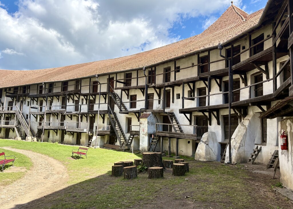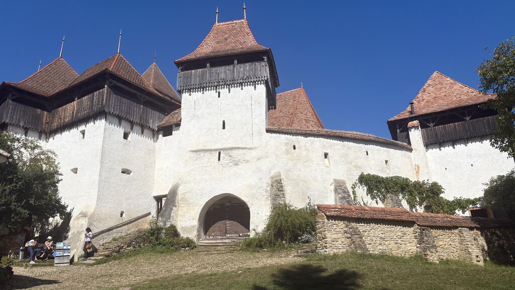 С утра выпили кофе с круассанами в кафе и поехали дальше. Доехали до деревни Viscri, которая считается самобытной и сохранившей старый уклад жизни. Там посетили небольшую укрепленную церковь.